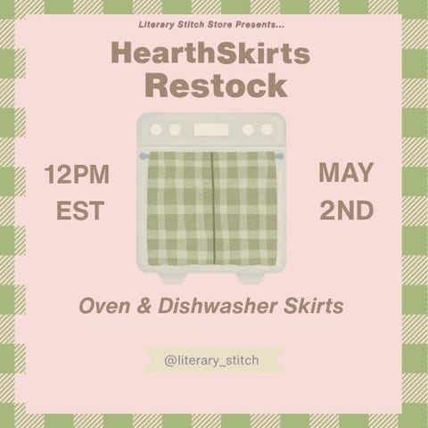 Bringing back that soft, cozy charm your kitchen deserves with oven and dishwasher skirts. This restock will feature new patterns and colorways, all in limited quantities and thoughtfully handmade. More details coming soon ♡
